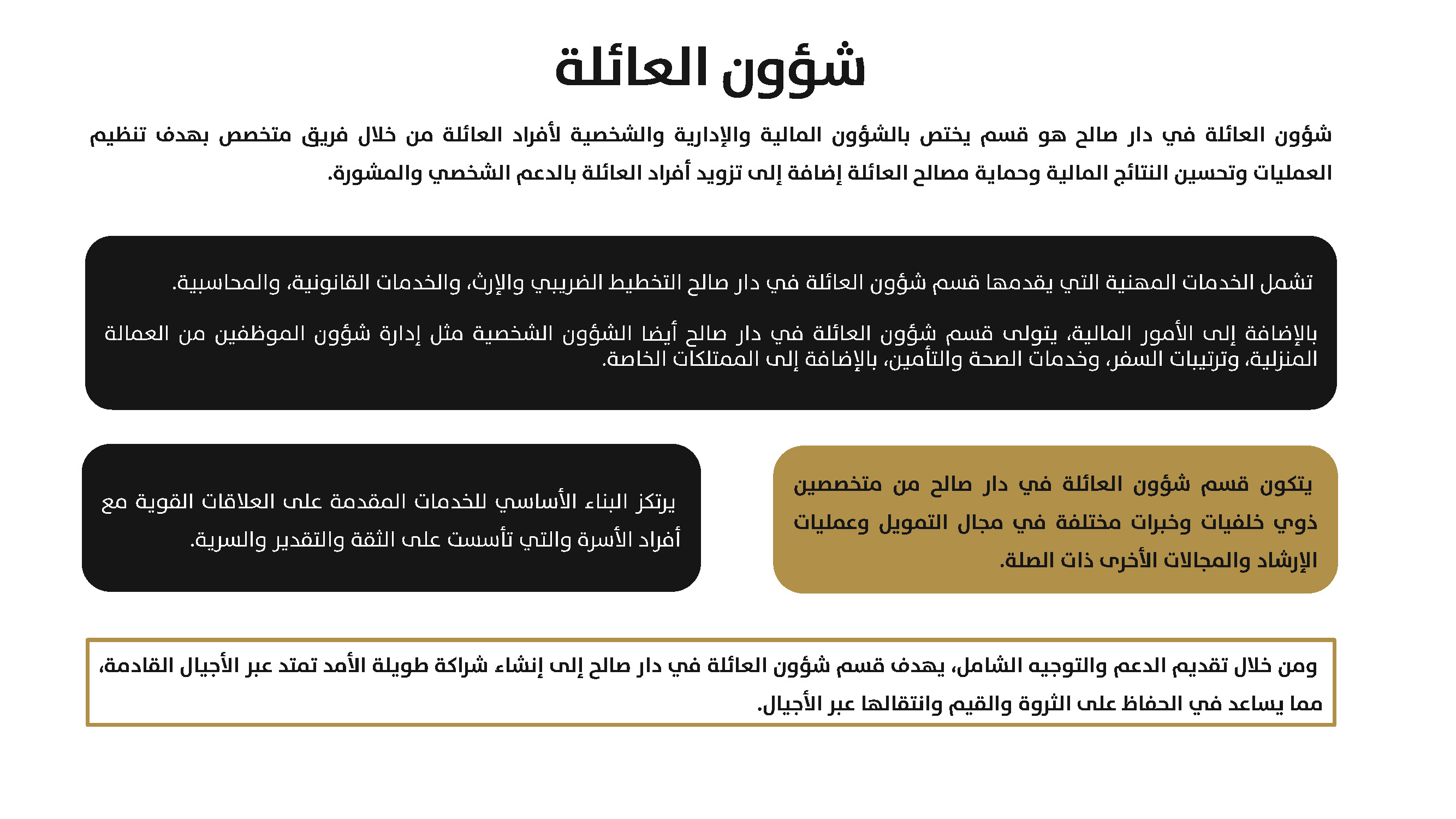 أن نكون داراً يجتمع فيه ال صالح كامل بالترابط والوئام ويجتمع فيه لهم..تنمية الثروات واستمرارية الاعمال و إعداد الأجيال القادمة.