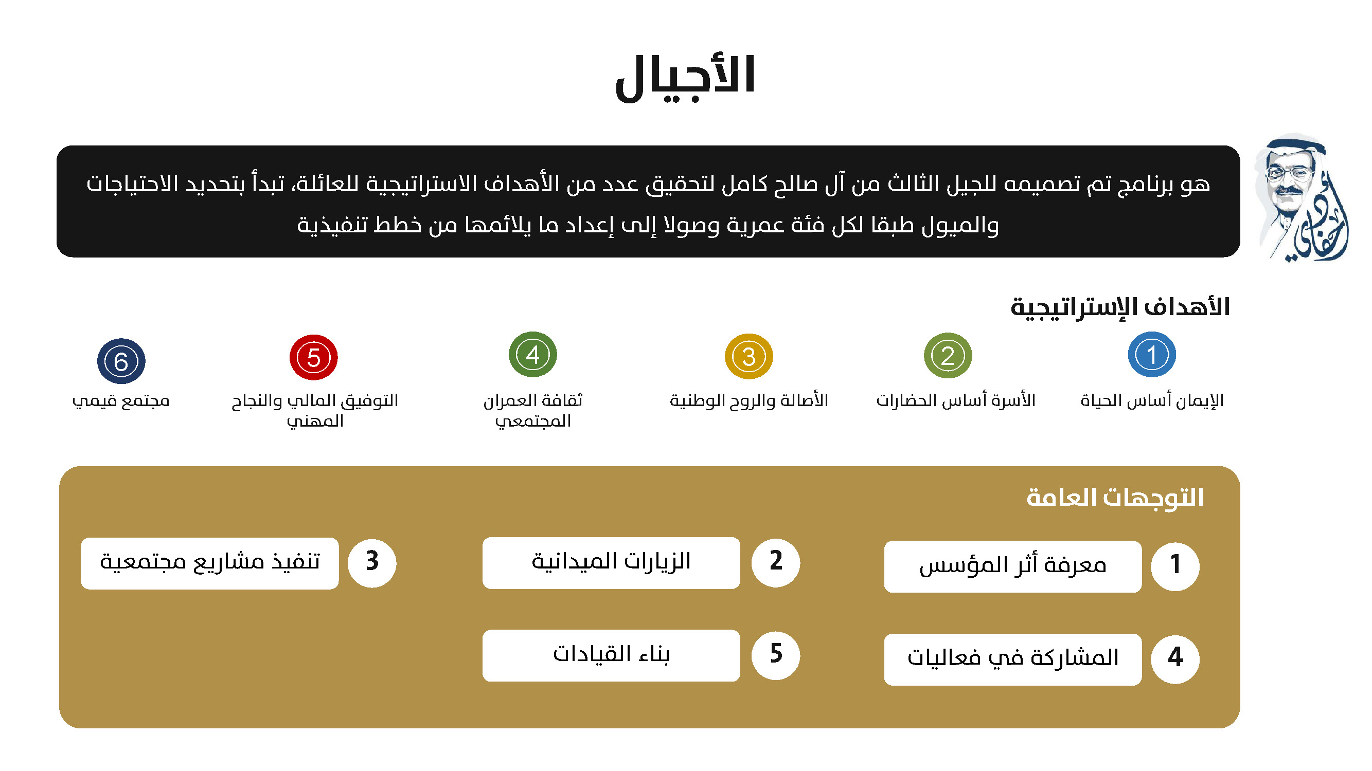 أن نكون عائلة متحدة تحت مظلة إرث المؤسس بتكريم مسيرته والاستمرار في مواصلة إنجازاته، وان نكون ملهَمِين بما قدمه المؤسس في حياته وقيمه الاخلاقية وان نجتهد في الحفاظ على أعلى معايير تطبيقها.